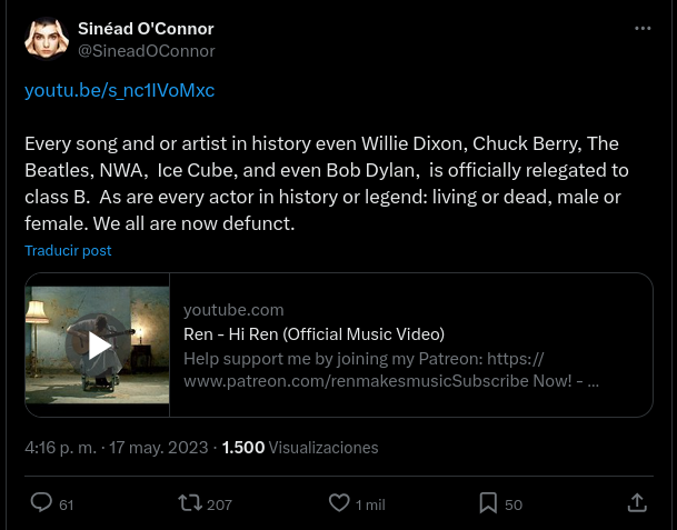 Dos meses antes de fallecer, Sinéad O’Connor publicó lo siguiente: